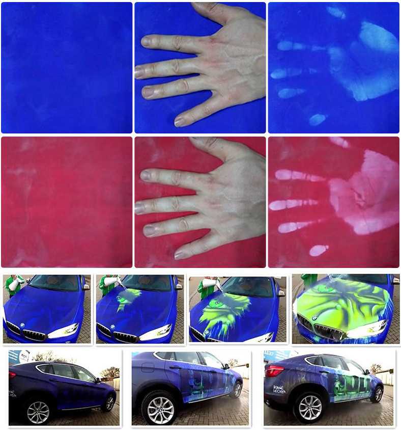 想制作不同溫度變不同顏色的溫變材料非常簡單,我們根據(jù)自己想要的溫度和顏色選擇溫變粉,最底層的是溫度最高的,等第一層溫變粉干后我們再涂上第二層,這樣一層一層地涂完后就可以得到你想要的效果了。