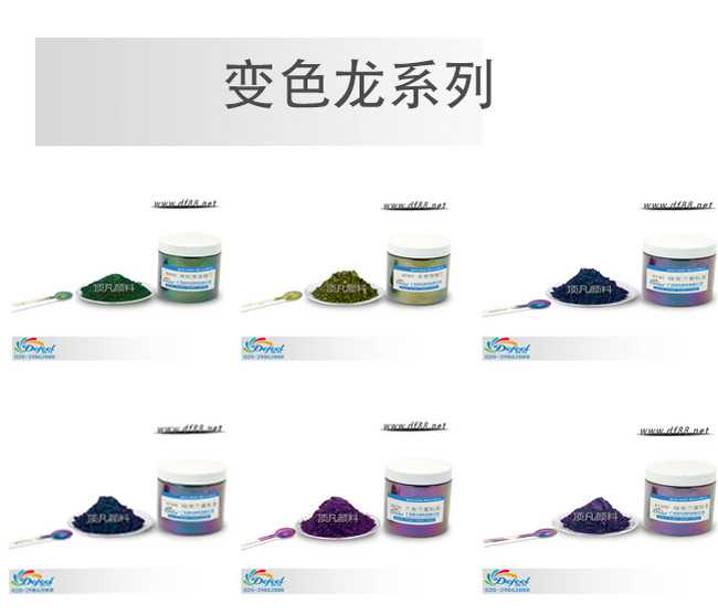 頂凡變色龍粉可應用于涂料、油墨、塑料各產業,產品之設計大多以室內(無紫外光之環境)與室外(有紫外光之環境)有顏色變化為訴求。可以用于汽車改色變色龍漆、變色龍指甲油、變色龍眼影、化妝品高檔包裝等。電話:13378693789