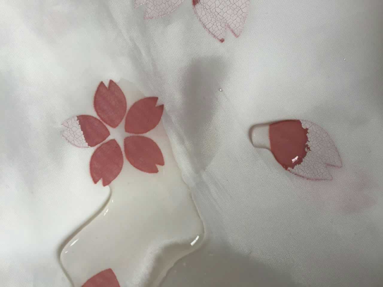 2.待圖案的變色顏料干透后,用100-120目絲網(wǎng)(水性網(wǎng))將遇水變色顏料印在圖案之表面,若需稀釋。可加入小量蒸餾水稀釋。頂凡遇水變色顏料干透后用肉眼幾乎看不見,顯示透明的效果。